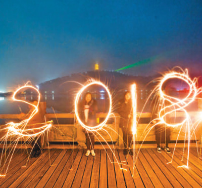 江西都昌縣游客用煙花棒畫出“2018”字樣。傅建斌攝(人民視覺)