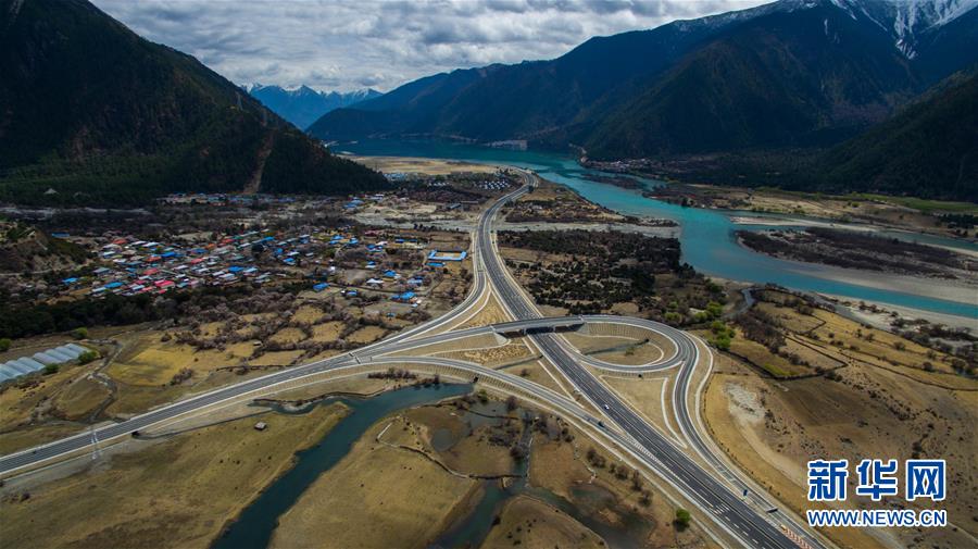 俯瞰西藏林芝境內(nèi)的拉林高等級公路(2016年4月4日攝)。拉林高等級公路起于拉薩市,止于林芝巴宜區(qū)八一鎮(zhèn)。為把拉林高等級公路建設(shè)成為生態(tài)通道、綠色長廊、景觀大道,西藏自治區(qū)林業(yè)廳在科學(xué)指導(dǎo)和嚴(yán)格監(jiān)管下,堅(jiān)持不破壞、少擾動、多恢復(fù)原則,對拉林高等級公路邊坡進(jìn)行綠化,種植草坪。新華社記者 普布扎西 攝