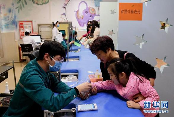 1月3日,在鄭州市兒童醫(yī)院輸液大廳,醫(yī)務(wù)人員在為患兒輸液。當(dāng)下正值流感高發(fā)季節(jié),河南省鄭州市各大醫(yī)院的兒科門診就診患者數(shù)量增多,其中大部分是呼吸道疾病的孩子。醫(yī)務(wù)人員提醒市民,預(yù)防流感應(yīng)保持良好的衛(wèi)生習(xí)慣,兒童患流感后要及早就醫(yī),防止重癥流感發(fā)生。新華社記者 李安 攝