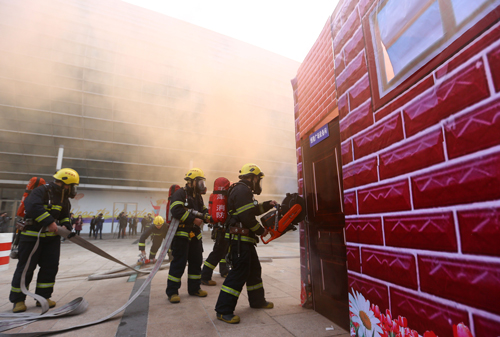 消防人員參加天津市和平區(qū)舉行的反恐應(yīng)急綜合演練