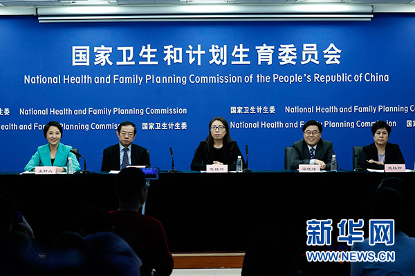 1月9日拍攝的國家衛(wèi)計委新聞發(fā)布會現(xiàn)場。新華社記者 張玉薇 攝