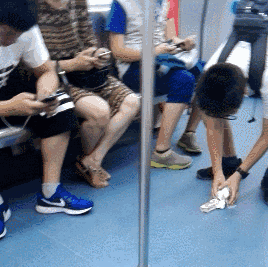 江蘇無錫地鐵1號線上,一個(gè)小男孩在用紙巾擦拭地面上的臟物,持續(xù)了十分鐘,直到擦干凈。?