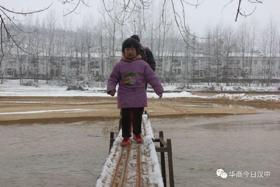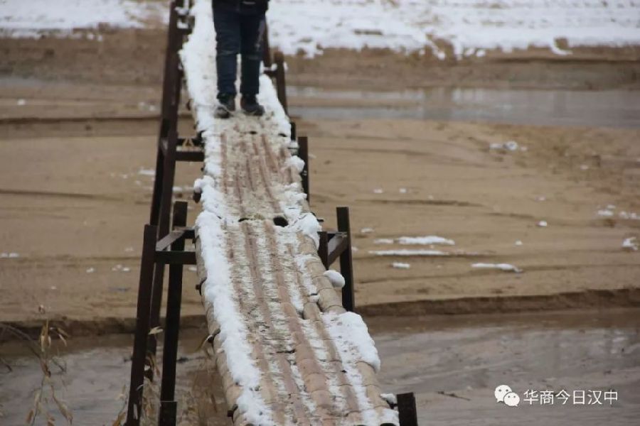 竹橋橋面結滿冰碴子,如同走在結冰的陶瓷地板上。