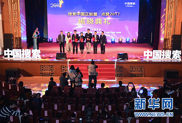 1月19日,“搜索中國正能量點(diǎn)贊2017”活動獲獎(jiǎng)企業(yè)代表在頒獎(jiǎng)典禮上領(lǐng)獎(jiǎng)。當(dāng)日,由中國搜索創(chuàng)意策劃,聯(lián)合多家中央重點(diǎn)新聞網(wǎng)站和北京大學(xué)新媒體研究院共同舉辦的“搜索中國正能量點(diǎn)贊2017”大型網(wǎng)絡(luò)宣傳活動揭曉典禮在北京舉行。此次活動歷時(shí)兩月,征集評選出“精彩中國、創(chuàng)新中國、美麗中國、公益中國、品牌中國”五大系列23個(gè)熱搜、點(diǎn)贊榜單。新華社記者 李賀 攝