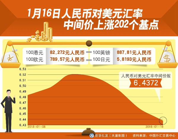 ??? 17日,人民幣對(duì)美元中間價(jià)報(bào)6.4335,創(chuàng)2015年12月10日以來新高。對(duì)越來越多走出國門的中國人來說,人民幣值不值錢很重要。記者算了一筆賬,以17日當(dāng)天的人民幣對(duì)美元中間價(jià)計(jì)算,與去年同期比,1萬元人民幣能多換近105美元。一些計(jì)劃春節(jié)出游或有留學(xué)需求的人們甚至加快了換匯步伐。>>