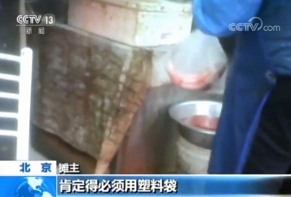 在北京街頭,一些早點(diǎn)攤前滿是塑料袋。
