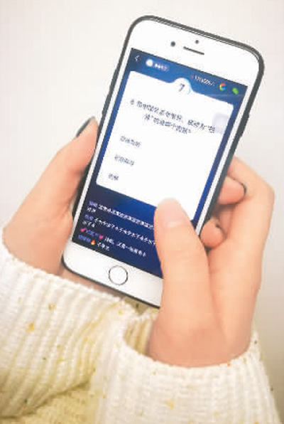 “人民日報(bào)海外版?zhèn)b客島的作者一般自稱為島叔和什么?”“當(dāng)然是島妹??!”伴隨著手機(jī)屏幕上緊張的10秒倒計(jì)時(shí),武漢的蔡家欣迅速地點(diǎn)擊了正確答案。她的微信群里,一起答題的小伙伴們都在一邊緊張地答題,一邊熱烈地討論著。
