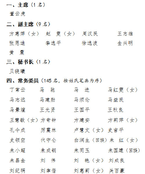 主席、副主席、秘書長和常務(wù)委員名單