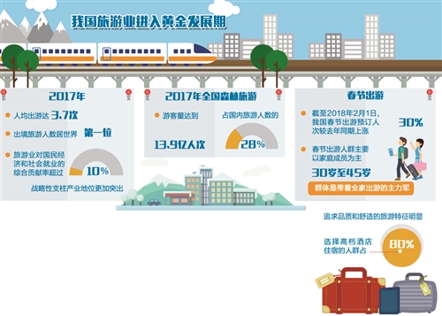 眾信旅游發(fā)布的數(shù)據(jù)顯示,截至2月1日,春節(jié)出游預(yù)訂人次較去年同期上漲30%。中國(guó)旅行社協(xié)會(huì)對(duì)外發(fā)布的《2018春節(jié)黃金周旅游趨勢(shì)報(bào)告》顯示,2018年春節(jié)期間,在旅游消費(fèi)持續(xù)升溫的情況下,春節(jié)全家出游成為越來(lái)越多人的選擇,旅游過(guò)年人數(shù)有望創(chuàng)歷史新高。