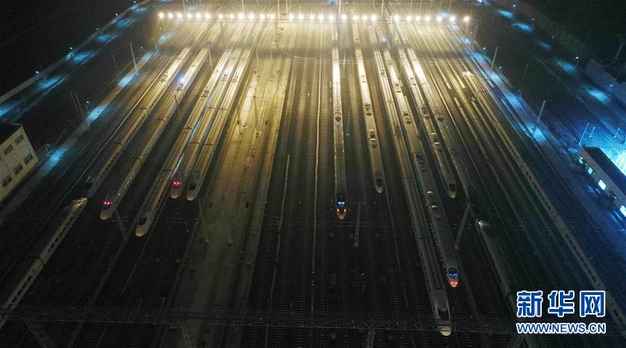 這是1月31日清晨在貴陽(yáng)北動(dòng)車運(yùn)用所拍攝的動(dòng)車組列車。春運(yùn)即將開(kāi)始,貴陽(yáng)北動(dòng)車運(yùn)用所各個(gè)系統(tǒng)的工作人員對(duì)動(dòng)車組列車進(jìn)行全面細(xì)致的“體檢”,確保春運(yùn)期間動(dòng)車組列車安全運(yùn)行。新華社發(fā) 吳吉斌 攝