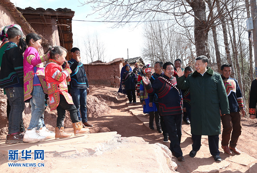 2月11日上午,習近平總書記驅(qū)車2個多小時,從西昌市來到位于大涼山深處的昭覺縣三岔河鄉(xiāng)三河村、解放鄉(xiāng)火普村,走進彝族貧困群眾家中,看實情、問冷暖、聽心聲,同當?shù)馗刹咳罕姽采叹珳拭撠氈?。新華社記者 謝環(huán)馳 攝