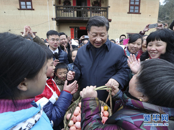 2015年2月13日,習近平回到曾插隊7年的陜西延川縣文安驛鎮(zhèn)梁家河村看望村民,自掏腰包給鄉(xiāng)親們送上年貨。他此行還有一個重要目的是對革命老區(qū)脫貧致富進行調(diào)研,確保老區(qū)人民同全國人民一道進入全面小康社會。
