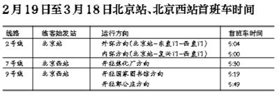 2號(hào)線、7號(hào)線、9號(hào)線2月19日至3月18日首班車(chē)時(shí)段加開(kāi);緩解北京站、北京西站返程客流壓力