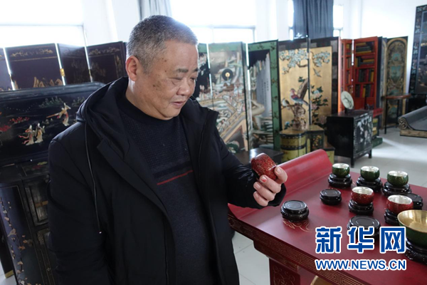 新華網(wǎng)黃山2月23日電(卓越)漆器,即用漆涂在各種器物的表面上所制成的日常器具及工藝品、美術(shù)品,是中國古代在化學(xué)工藝及工藝美術(shù)方面的重要發(fā)明。福州脫胎漆器,廈門髹金漆絲漆器,廣東暈金漆器,揚(yáng)州螺鈿漆器,北京剔紅漆器......在眾多地域制漆技藝中,徽漆作品更以其復(fù)雜的工藝、豐富變幻的肌理受到世人的關(guān)注,并被收入國家非物質(zhì)文化遺產(chǎn)名錄。春節(jié)期間,跟隨“非遺”傳承人、黃山市徽漆工藝有限公司總經(jīng)理奚建輝一起,記者近距離感受了徽漆工藝那古老而神奇的魅力。
