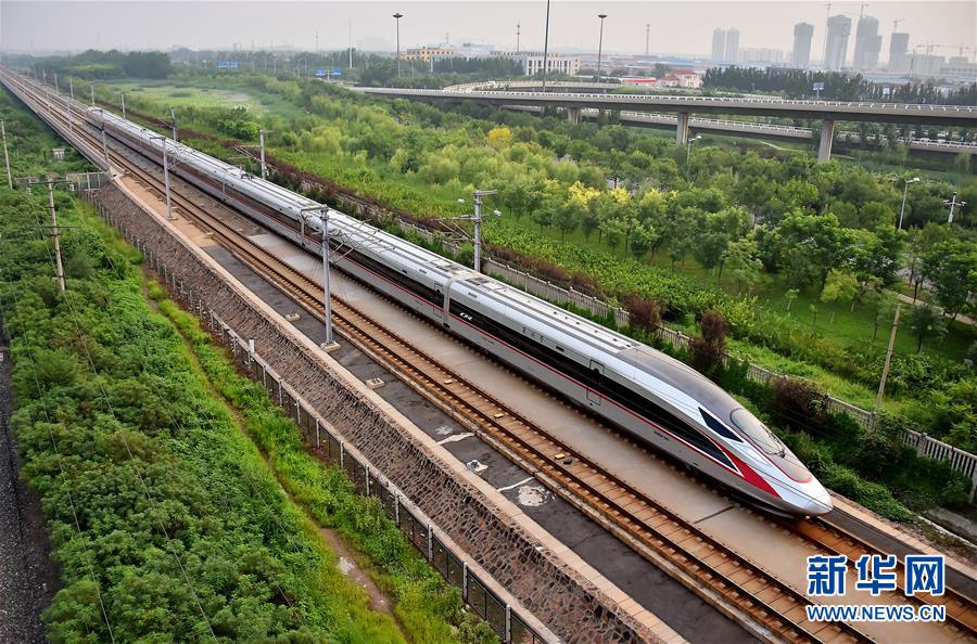2017年8月21日,從北京南開往天津的C2001次“復(fù)興號(hào)”中國(guó)標(biāo)準(zhǔn)動(dòng)車組駛?cè)胩旖蚴袇^(qū)。自當(dāng)日起,鐵路部門擴(kuò)大“復(fù)興號(hào)”動(dòng)車組列車開行范圍,京津城際列車開行19.5對(duì)“復(fù)興號(hào)”動(dòng)車組列車。新華社發(fā)(楊寶森 攝)