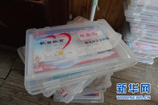 村委辦公室中的“精準脫貧文件箱”,扶貧干部每月走訪時需攜帶并記錄。新華網(wǎng) 卓越 攝