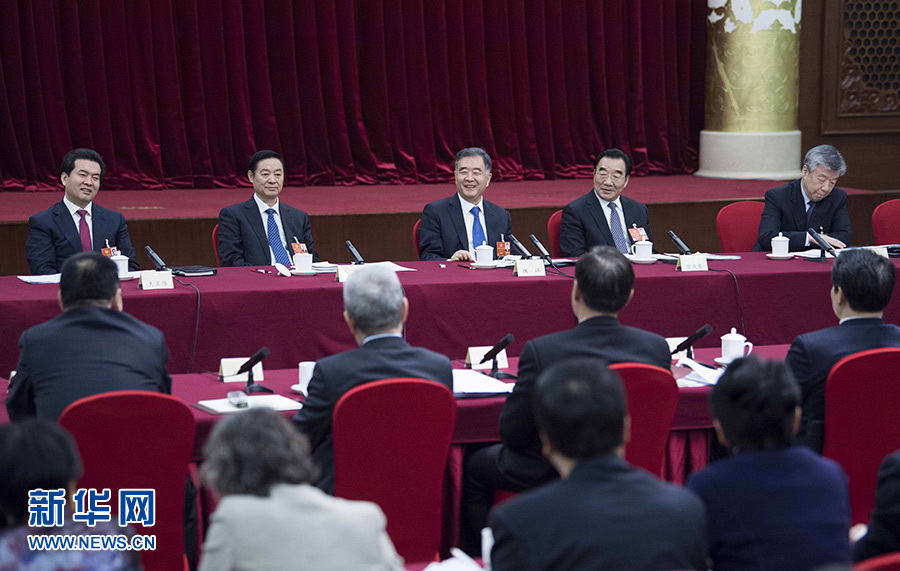 3月4日,中共中央政治局常委、中央書(shū)記處書(shū)記王滬寧看望出席全國(guó)政協(xié)十三屆一次會(huì)議的教育、新聞出版界委員并參加討論。 新華社記者 燕雁 攝