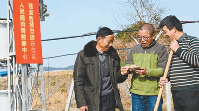 在云峰鎮(zhèn)獅嶺村“711服務(wù)群眾”指揮協(xié)調(diào)室,寬敞明亮的便民服務(wù)大廳里人來人往,有的在咨詢產(chǎn)業(yè)發(fā)展,有的在請(qǐng)求技術(shù)指導(dǎo)。工作人員通過智慧黨建大數(shù)據(jù)平臺(tái),直接發(fā)出指令到就近的黨員手機(jī)客戶端,收到指令的黨員能夠第一時(shí)間入戶提供服務(wù)。