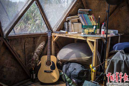 早在2011年,面對(duì)城市的高房價(jià)和霧霾,22歲的唐冠華就開始思考一種主流之外的生活方式。很快,從事廣告設(shè)計(jì)和理財(cái)分析工作的唐冠華和邢振先后離職,在青島嶗山的山林中建立了“自給自足實(shí)驗(yàn)室”,盡量不使用與不可持續(xù)能源相關(guān)的工具,獨(dú)立生活了5年。