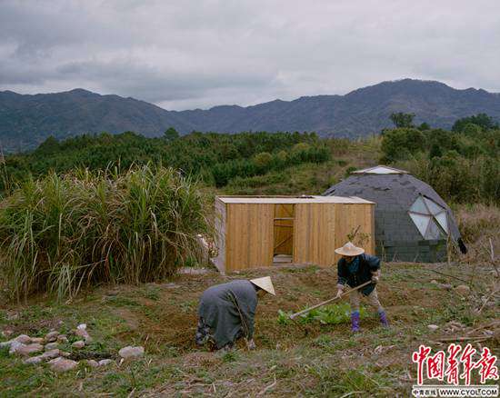 3月中旬,福建省福州市閩侯縣剛剛下過一場大雨??h北部關(guān)中村山腳下的農(nóng)田里,兩個(gè)穿著格子襯衫、抓絨衣的年輕人正用不太熟練的動(dòng)作揮著鋤頭翻地。對(duì)于居住在半山腰一座圓頂木屋的唐冠華和妻子邢振來說,這是再平常不過的畫面。然而兩年前,他們從青島來到關(guān)中村建立“南部生活”共識(shí)社區(qū)時(shí),這里還是一片難覓棲身之所的荒地。