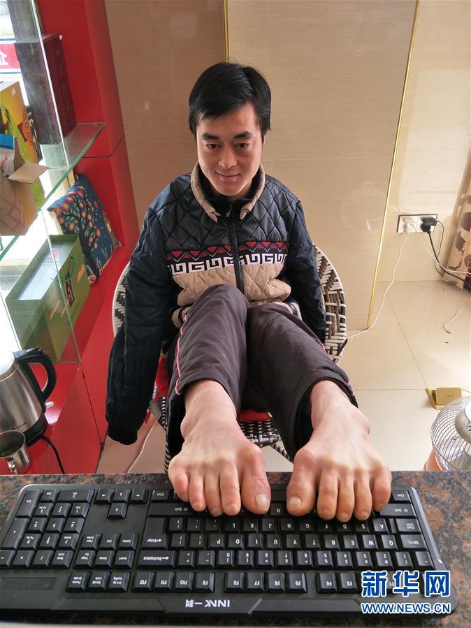 “從剛開(kāi)始用一個(gè)一個(gè)腳指頭練習(xí)‘敲’鍵盤(pán),到現(xiàn)在的十根腳趾都能用上了,證明只要努力了,就沒(méi)有做不到的事兒……”他在微信朋友圈里這樣說(shuō)。