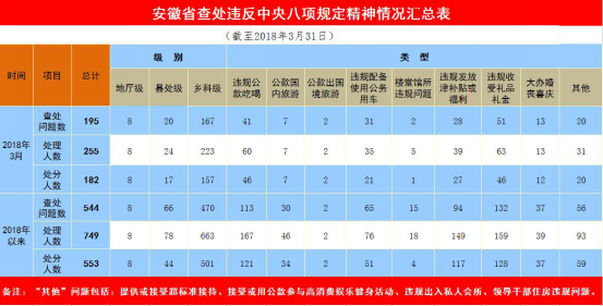 今年1至3月,安徽省共查處違反中央八項規(guī)定精神問題544個,處理749人,給予黨紀(jì)政務(wù)處分553人。