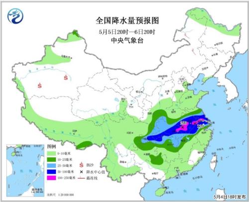 具體來(lái)看,預(yù)計(jì)4日20時(shí)至5日20時(shí),西南地區(qū)東部、江漢東部、江淮等地的部分地區(qū)有大雨,重慶南部、湖北東北部和西南部、河南南部、安徽中部等地有暴雨(50~60毫米),局部地區(qū)有大暴雨(100~120毫米)。