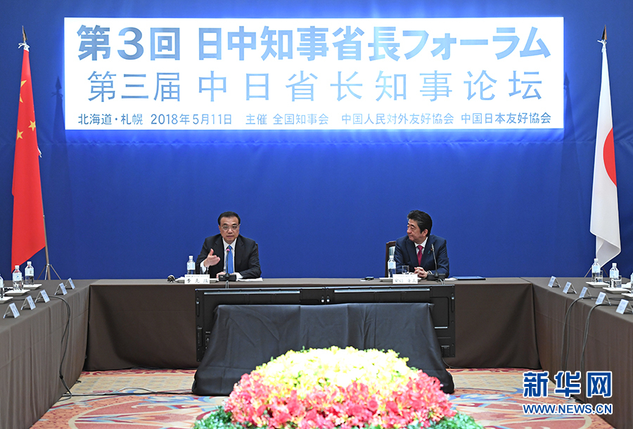 當?shù)貢r間5月11日上午,國務院總理李克強在北海道札幌下榻飯店出席中日省長知事論壇開幕式并致辭。日本首相安倍晉三出席。 新華社記者 張領攝