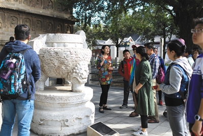 2017年10月,北京石刻藝術(shù)博物館館員在研究之余還免費(fèi)為觀眾講解。據(jù)悉,新出臺的《博物館服務(wù)規(guī)范》對博物館講解服務(wù)作出規(guī)范,要求講解員講解時應(yīng)與觀眾互動交流,并解答觀眾問題。新京報記者 浦峰 攝