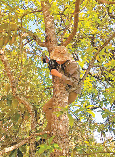 中國科學院昆明動物研究所研究人員在安放紅外相機,進行鳥類監(jiān)測。中國科學院昆明動物研究所鳥類學組供圖