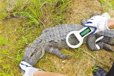 “通俗地說,電子芯片就相當于揚子鱷的身份證,我們再次捕捉到這只揚子鱷時,能迅速確定它的各種信息;無線電發(fā)射器可以給揚子鱷定位,讓我們知道它在哪?!卑不論P子鱷國家級自然保護區(qū)管理局宣傳教育科科長汪仁平說。