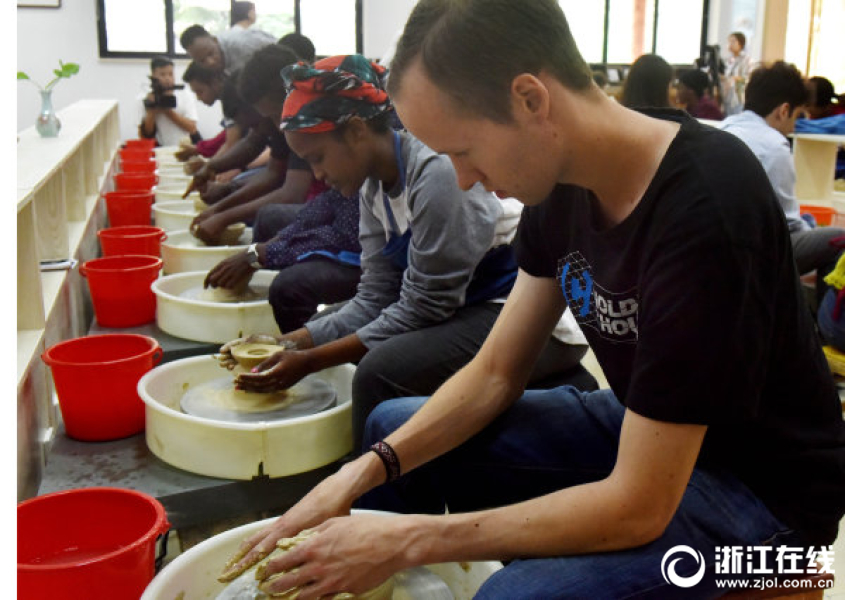 6月3日,浙師大外國留學生,在武義漢坊婺窯體驗館學陶藝。婺州窯,始于三國時期,是金華市第四批國家非物質文化遺產(chǎn)代表性項目。當日,來自美國、俄羅斯等30多個國家的浙江師范大學70多名留學生,在武義漢坊婺窯體驗館開心學習拉坯、修坯、上釉等陶藝生產(chǎn)環(huán)節(jié)。留學生們還把自己的國籍、姓名刻在親手做的陶瓷器皿上,委托燒制、留作紀念。(拍友 張建成 攝)