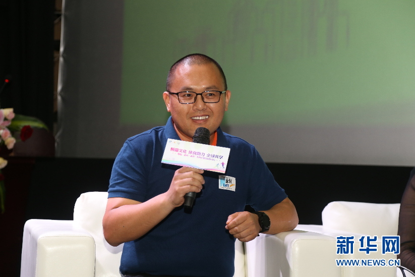 ↑新華網(wǎng)體育總經(jīng)理侯大偉在發(fā)布會(huì)現(xiàn)場。新華網(wǎng)宋溪雨 攝