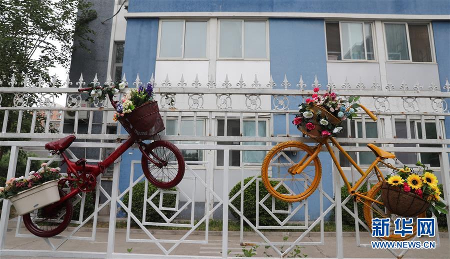 當(dāng)日,北京市豐臺區(qū)花鄉(xiāng)天倫錦城社區(qū)的居民利用社區(qū)內(nèi)廢棄的自行車,進行噴漆、裝上花籃等改造,把這些廢舊自行車變成裝飾品,自己動手裝點社區(qū)環(huán)境。