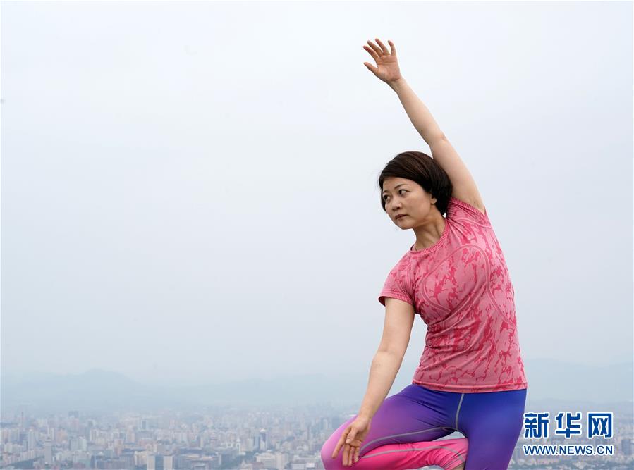 當(dāng)日,數(shù)名瑜伽愛好者在專業(yè)瑜伽教練的帶領(lǐng)下在北京國貿(mào)大酒店70層以上的高樓層練習(xí)瑜伽,體驗高空練習(xí)瑜伽的樂趣。