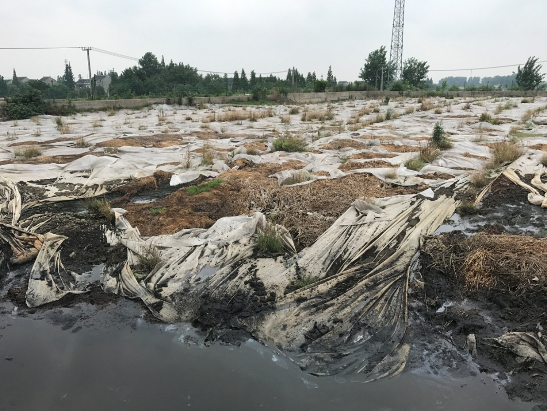 但是濱江污水處理廠在2013年租賃泰興市建筑材料三廠在頭圩村的空地,未經(jīng)任何部門批準,非法建設長寬高分別為70米、70米、4米的大池(南池),用來堆存大量污泥。