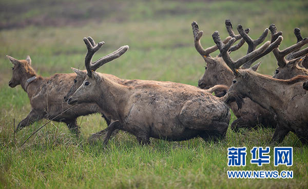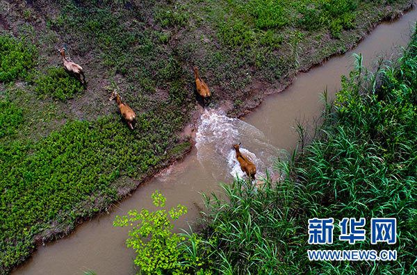江西首次在鄱陽湖濕地野放麋鹿