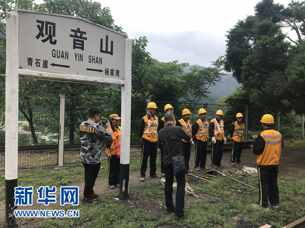 寶雞工務(wù)段觀音山橋隧養(yǎng)修工區(qū)的職工們?cè)谧鲭[患排查前的準(zhǔn)備工作。新華網(wǎng) 王頔 攝