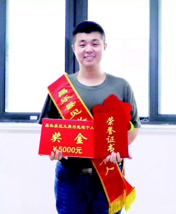 近兩個月前,昌樂小伙劉洋明不顧個人安危徒手將一名墜樓的男童接住,劉洋明見義勇為的事跡得到廣泛贊譽(yù)和關(guān)注。7月4日下午,劉洋明被昌樂縣授予“見義勇為先進(jìn)個人”榮譽(yù)稱號,并獎勵5000元獎金,然而,他轉(zhuǎn)身就將獎金捐出。