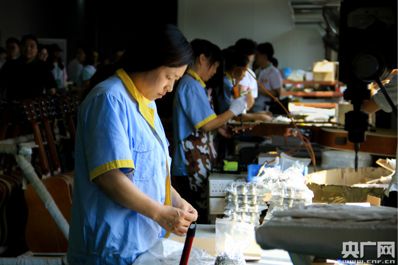 據(jù)了解,2017年,園區(qū)已實(shí)現(xiàn)生產(chǎn)吉他510萬把,產(chǎn)值51億元,創(chuàng)稅3億元,解決就業(yè)9242人,解決貧困人口就業(yè)1160人,帶動4640人脫貧。(記者 張佳琪)