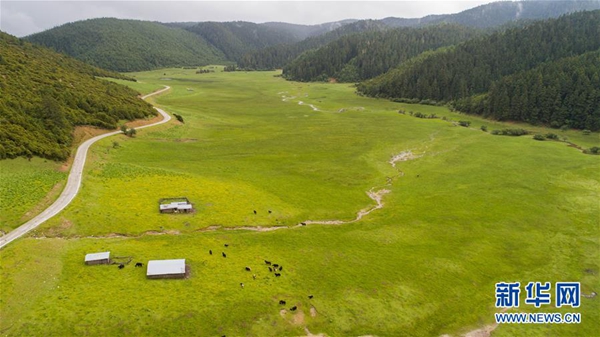普達(dá)措國(guó)家公園彌里塘片區(qū)風(fēng)景(7月18日無(wú)人機(jī)拍攝)。 新華社記者 胡超 攝