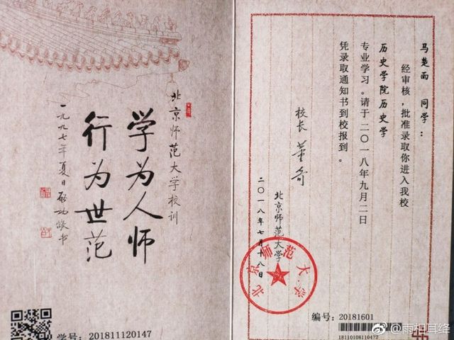 北京師范大學(xué)的素雅古樸風(fēng)錄取通知書,美到?jīng)]朋友