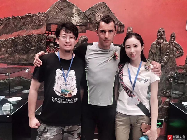 從左至右,央視導(dǎo)演劉曉,極限挑戰(zhàn)者讓·瑪利,央視導(dǎo)演劉千僡。圖 新疆經(jīng)濟(jì)報新媒體中心記者邢靚
