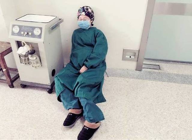 大年初二,河南鹿邑縣人民醫(yī)院手術(shù)室醫(yī)生牛明麗在手術(shù)間隙,坐在地上睡著了。從前日下午3點至當(dāng)日早晨7點,牛明麗和團隊成員幾乎連軸轉(zhuǎn)完成了10臺手術(shù)。