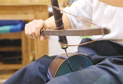 河北省非物質(zhì)文化遺產(chǎn)項(xiàng)目代表性傳承人李軍航用金剛鉆為殘破瓷器打孔。梁子棟攝(新華社發(fā))