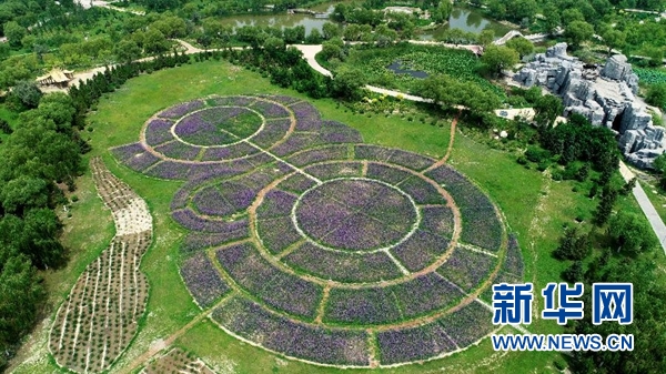 在寧夏石嘴山大武口發(fā)電廠第二排灰場上建起的石嘴山人民公園(7月31日無人機(jī)拍攝)。 新華社記者 王鵬 攝