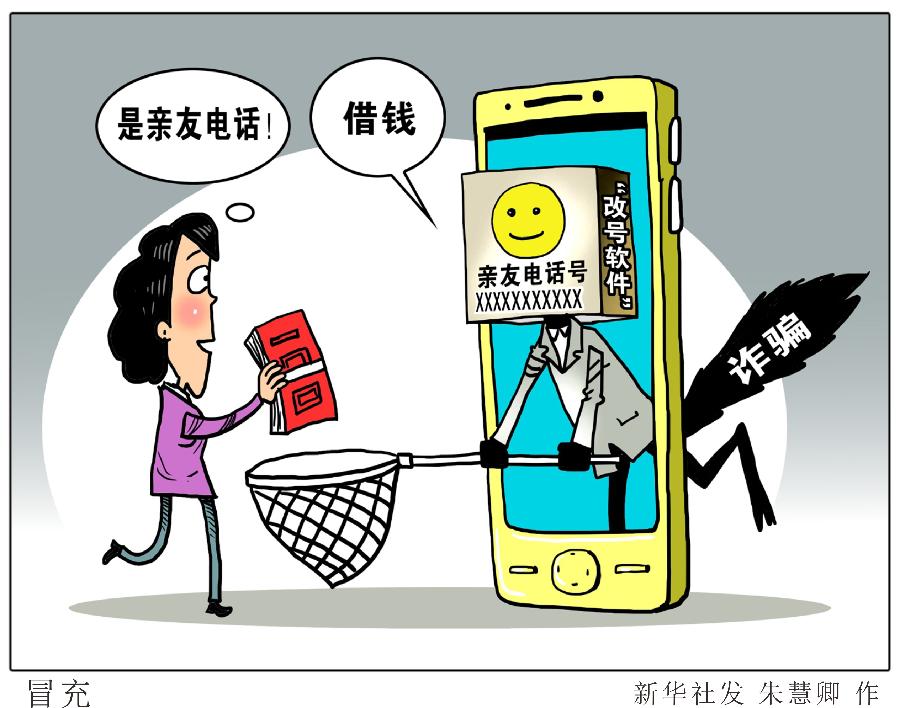 漫畫(huà):“改號(hào)”詐騙? 新華社發(fā) 程碩 作