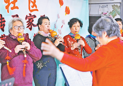 10月16日,北京市海淀區(qū)北下關(guān)街道廣通苑社區(qū)葫蘆絲樂(lè)隊(duì)在表演節(jié)目。當(dāng)日,該社區(qū)舉辦“重陽(yáng)孝道,傳承家風(fēng)”活動(dòng),組織社區(qū)文藝團(tuán)隊(duì)為老人們表演節(jié)目,開(kāi)展讀家書(shū)等活動(dòng),迎接重陽(yáng)節(jié)。新華社記者 鞠煥宗攝