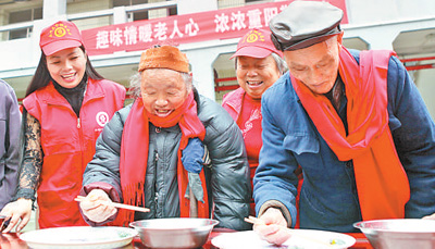 10月15日,重慶市永川區(qū)雙石鎮(zhèn)敬老院里歡歌笑語(yǔ)、熱鬧非凡,雙石鎮(zhèn)機(jī)關(guān)、社區(qū)的志愿者在此開(kāi)展“趣味情暖老人心 濃濃重陽(yáng)敬老情”主題活動(dòng),為30余名老人送去重陽(yáng)節(jié)的祝福。圖為老人在志愿者的助威聲中玩夾彈珠游戲。劉新吾 陳仕川攝影報(bào)道