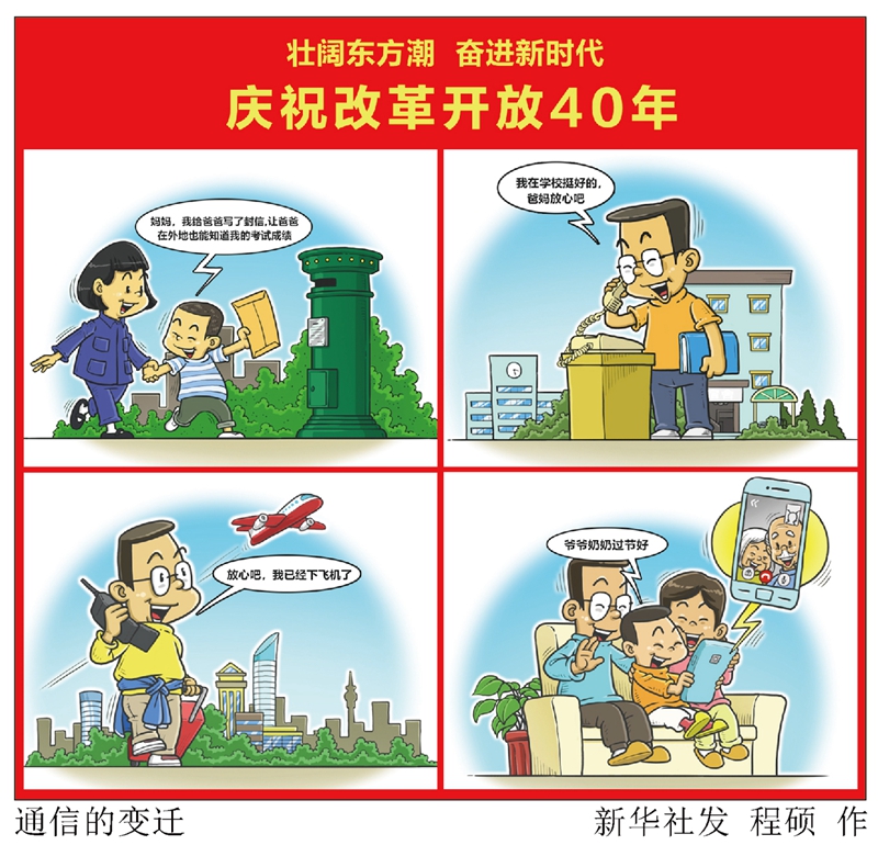 通信:以前,我們靠寫信,讓爸媽在外地也能知道我們的考試成績;后來,我們用座機(jī),告訴爸媽“我在學(xué)校挺好的”;再后來,我們無論出行到哪里,都可以隨時拿出手機(jī)跟家人說聲“放心吧”;如今,我們更加可以方便地打開手機(jī)視頻,問候爺爺奶奶“過節(jié)好”。↓↓
